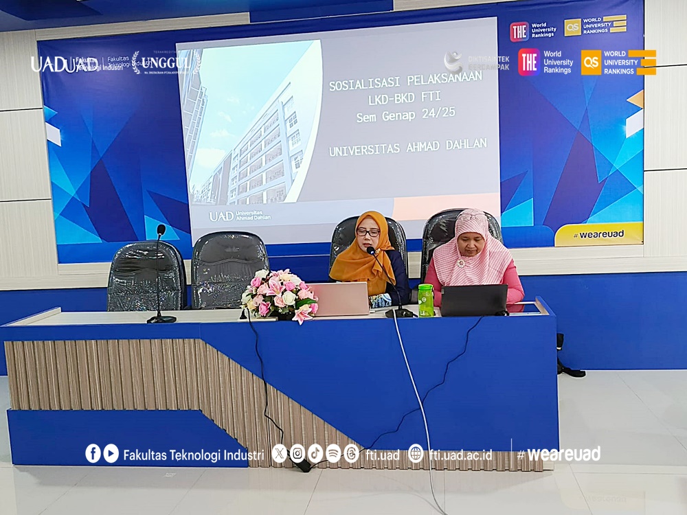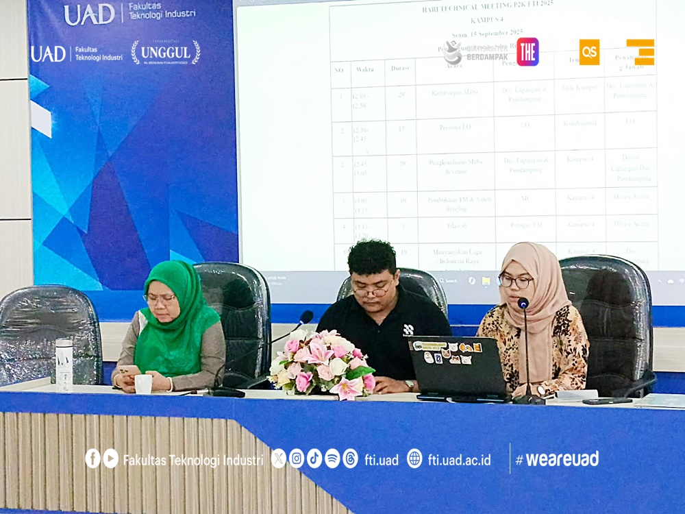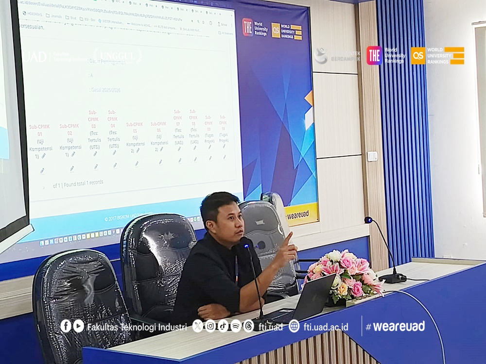 (FTI News), 16 September 2025 – Fakultas Teknologi Industri (FTI) Universitas Ahmad Dahlan (UAD) menggelar sosialisasi aturan perkuliahan untuk semester gasal tahun akademik 2025/2026. Acara yang berlangsung di ruang sidang bersama Kampus UAD IV ini dihadiri oleh seluruh dosen di lingkungan program studi (prodi) FTI UAD.
